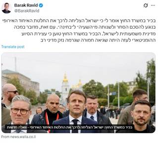 مسؤول كبير في وزارة الخارجية يقول لي إن إسرائيل نجحت في تخفيف قرار الاتحاد الأوروبي بشأن اتفاقية التجارة وتغييرها من “تعليق” إلى “مراجعة”. ومع ذلك، فإنها ضربة دبلوماسية كبيرة لإسرائيل. المسؤول في وزارة الخارجية يدعي أن وقف المساعدات الإنسانية لغزة كان خطأً فادحًا تسبب في ضرر دبلوماسي كبير