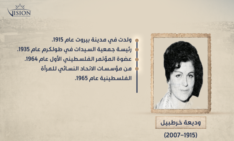 انتقلت للعيش في فلسطين مع زوجها أديب خرطبيل (طبيب) منذ عام 1932، وتنقلت في أكثر من مدينة فلسطينية منها طبريا، والقدس، ونابلس، وغزة، إلى أن استقرت في طولكرم عام 1935، وتولت رئاسة جمعية السيدات الخيرية الاجتماعية في طولكرم، وقامت بتقديم العديد من الخدمات للمجتمع المحلي في طولكرم، ومن ذلك تأسيس مستوصف لعلاج الفقراء يعمل فيه عدد من الأطباء، وإنشاء فرع لرعاية الأمومة والطفولة ودار حضانة ومشغلًا للخياطة والتطريز.